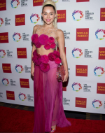 3941Майли Сайрус появилась на красной дорожке премии Vanguard Awards в женственном платье от российского дизайнера Ульяны Сергиенко. Платье было выполнено из объемных розовых цветов, которые усыпали сетку из кристаллов на верхней части платья. Подол был сшит из полупрозрачного материала, также украшенного цветочными аппликациями.